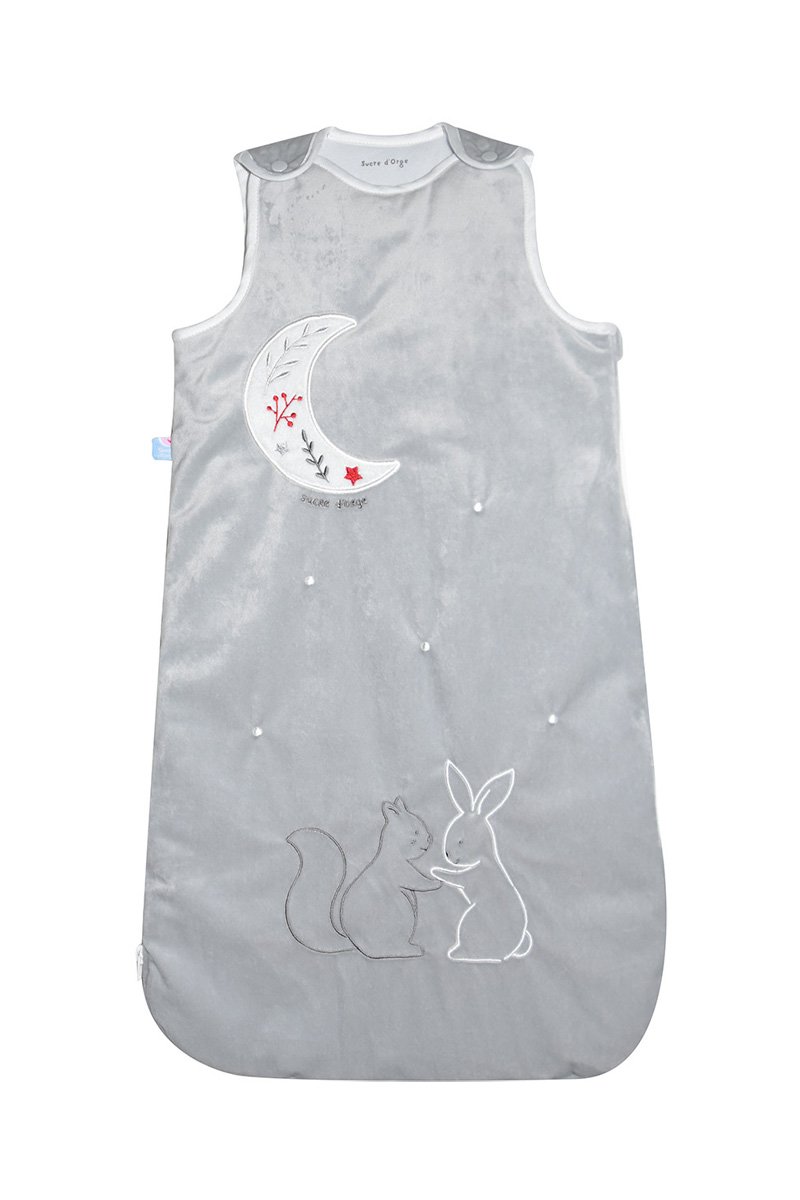 Logo, motifs lune, écureuils, fantaisie brodés et strass devant.