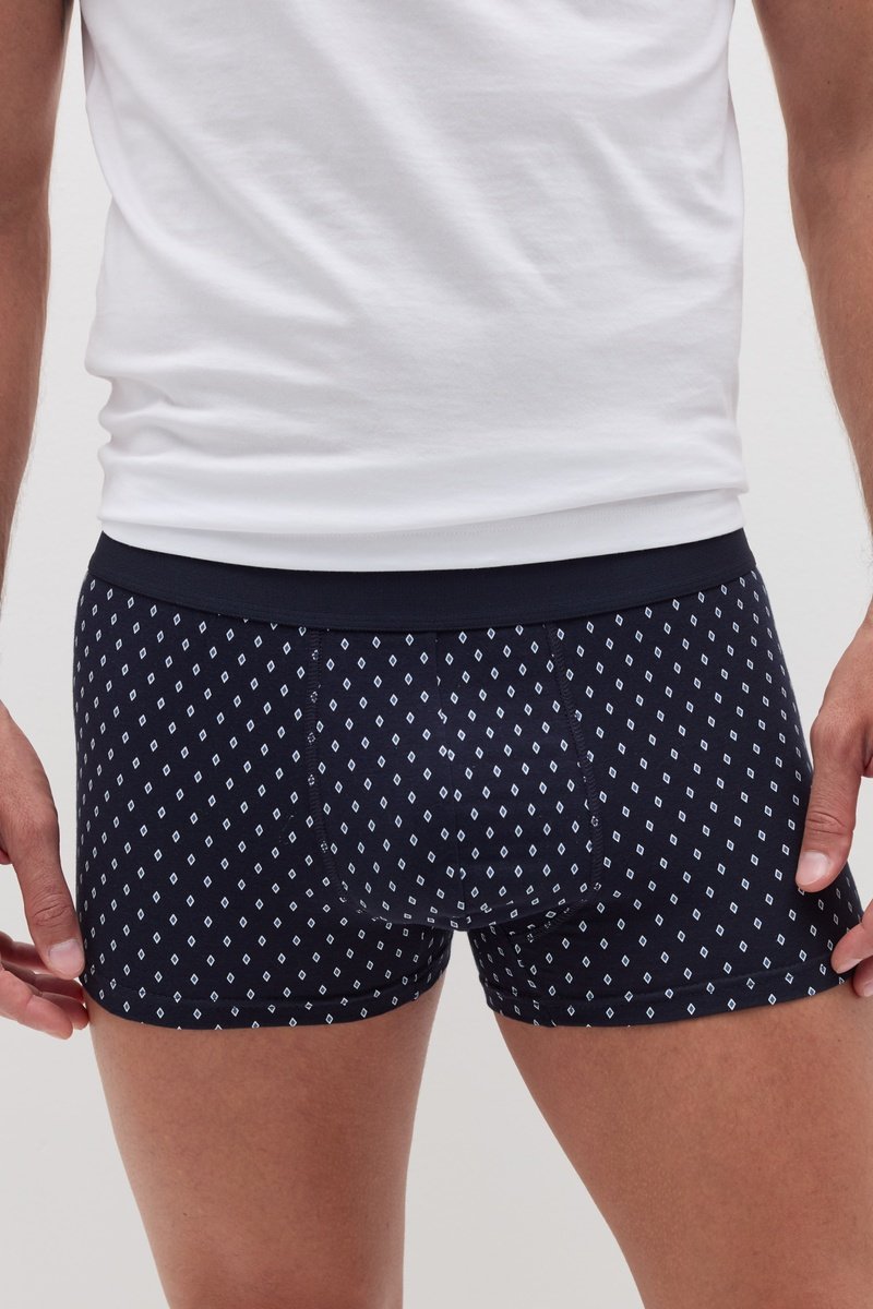 3 boxers en coton biologique mélangé dont 1 à motifs fantaisie et 1 à motifs géométriques.