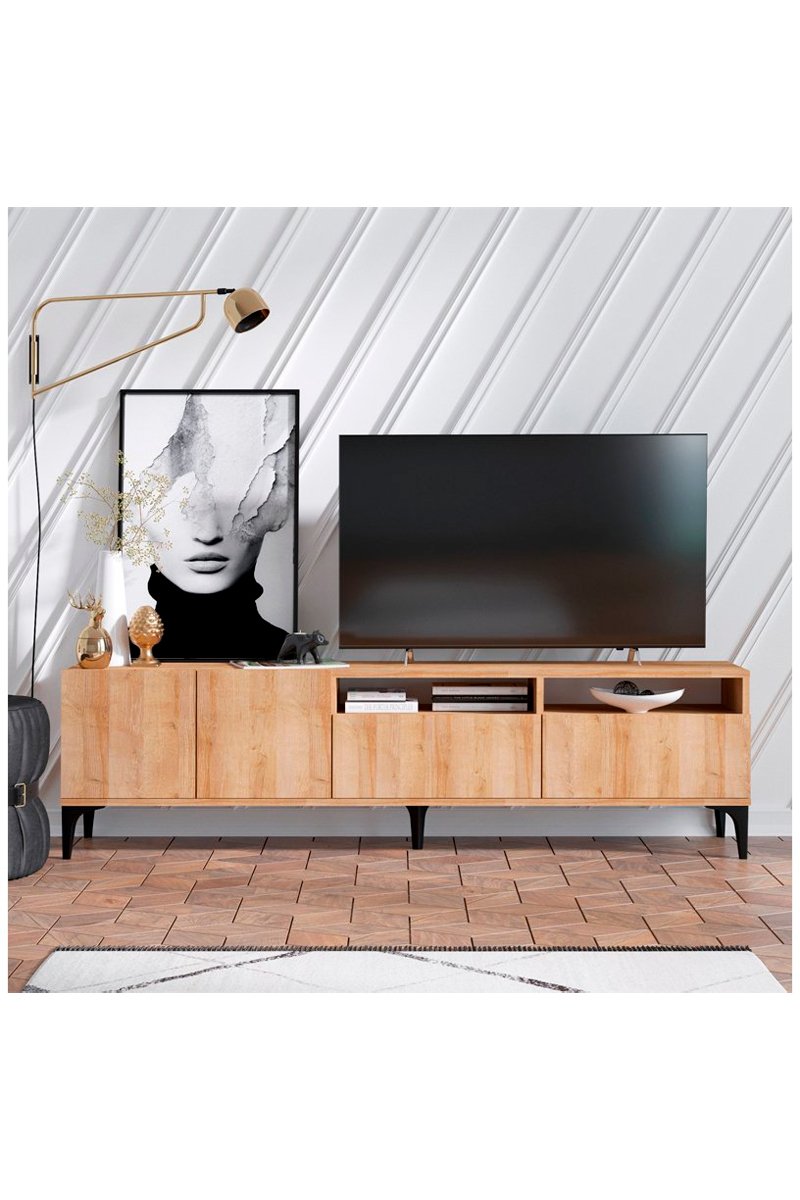 Meuble TV 2 portes 2 abattants Ross - 180 x 52 x 35 cm