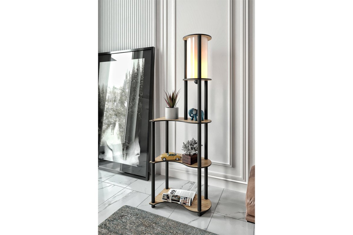 Lampadaire - Noir et imitation noyer - 40 W - 140 cm