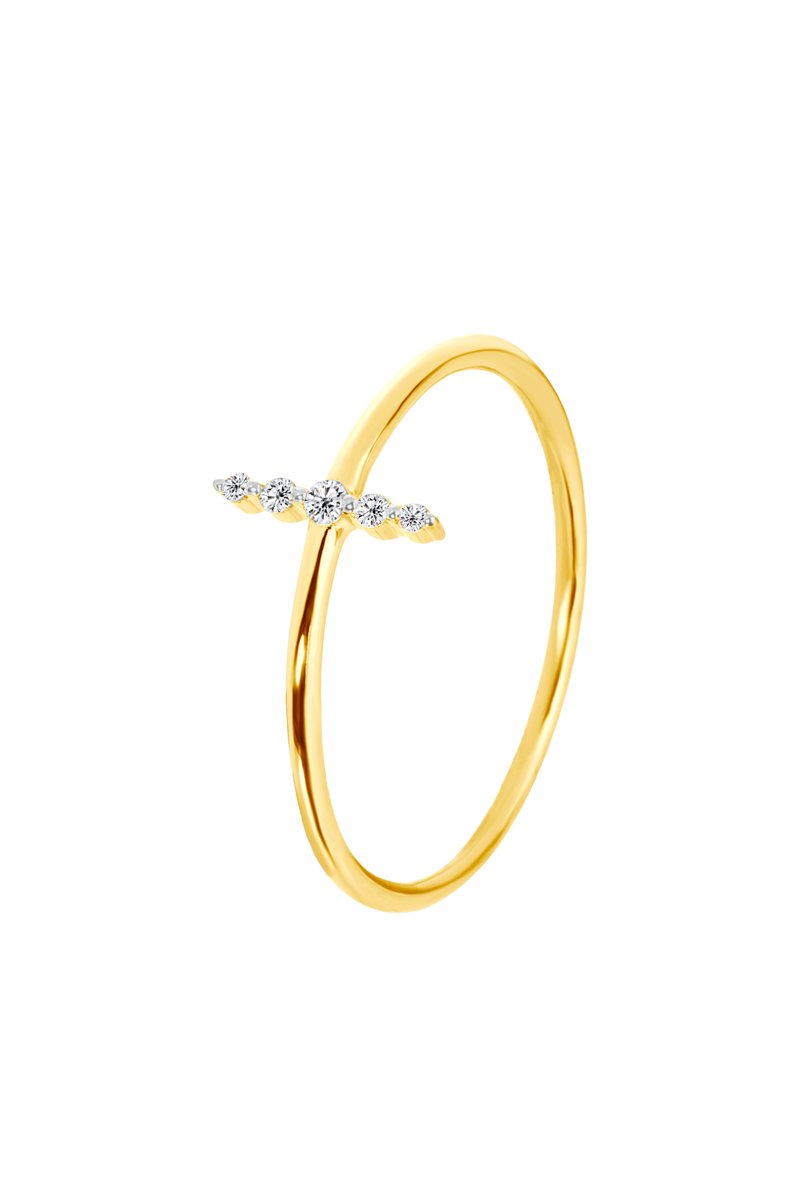 Bague en or jaune sertie de 5 diamants.