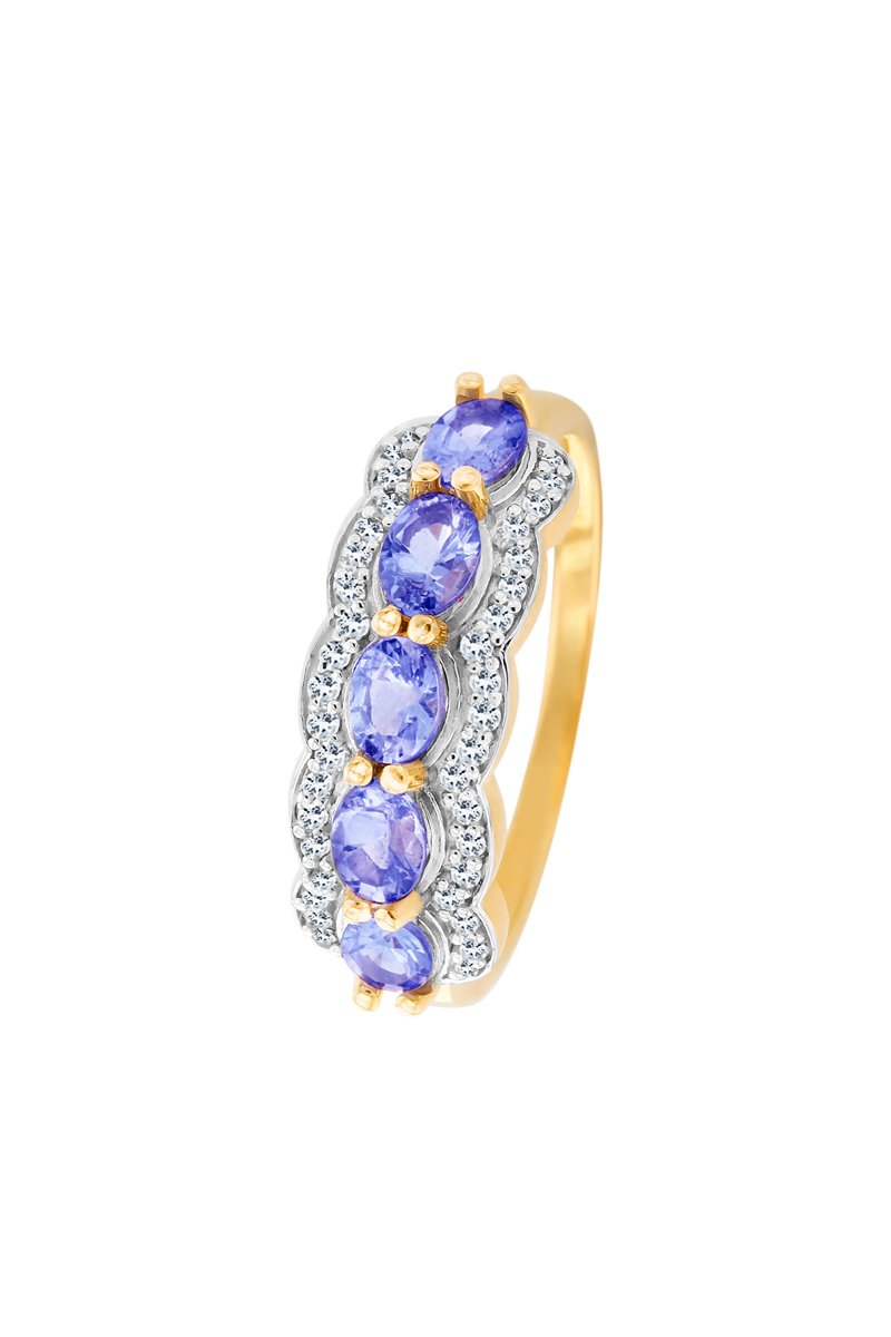 Bague en or jaune sertie de 38 diamants et 5 tanzanites.