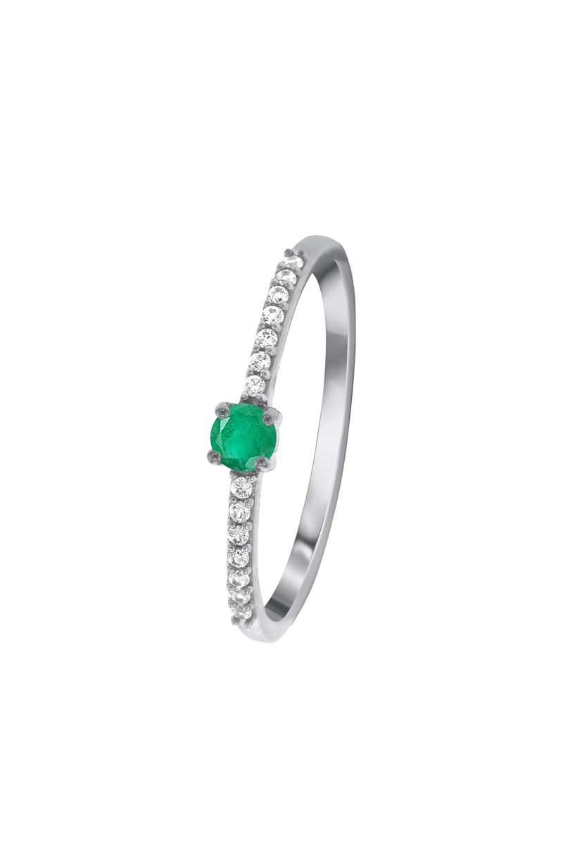 Matière : or blanc 375/1000, topazes 0,10 carats/14 et émeraude 0,15 carats/1