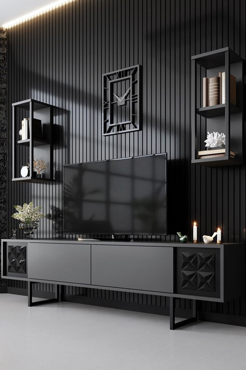 Dimensions meuble TV : L180 x H30 x P48 cm