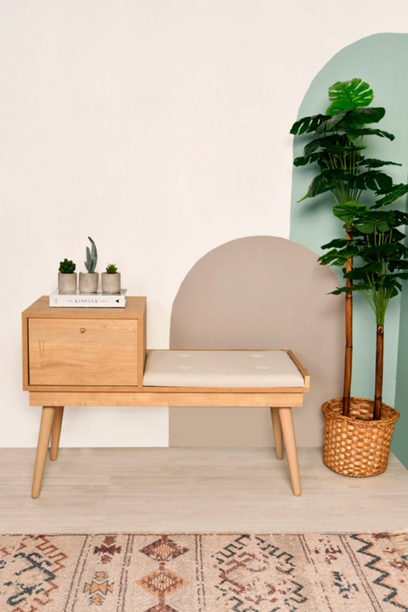 Banc - Revêtement en lin - 105 x 45 x 40 cm