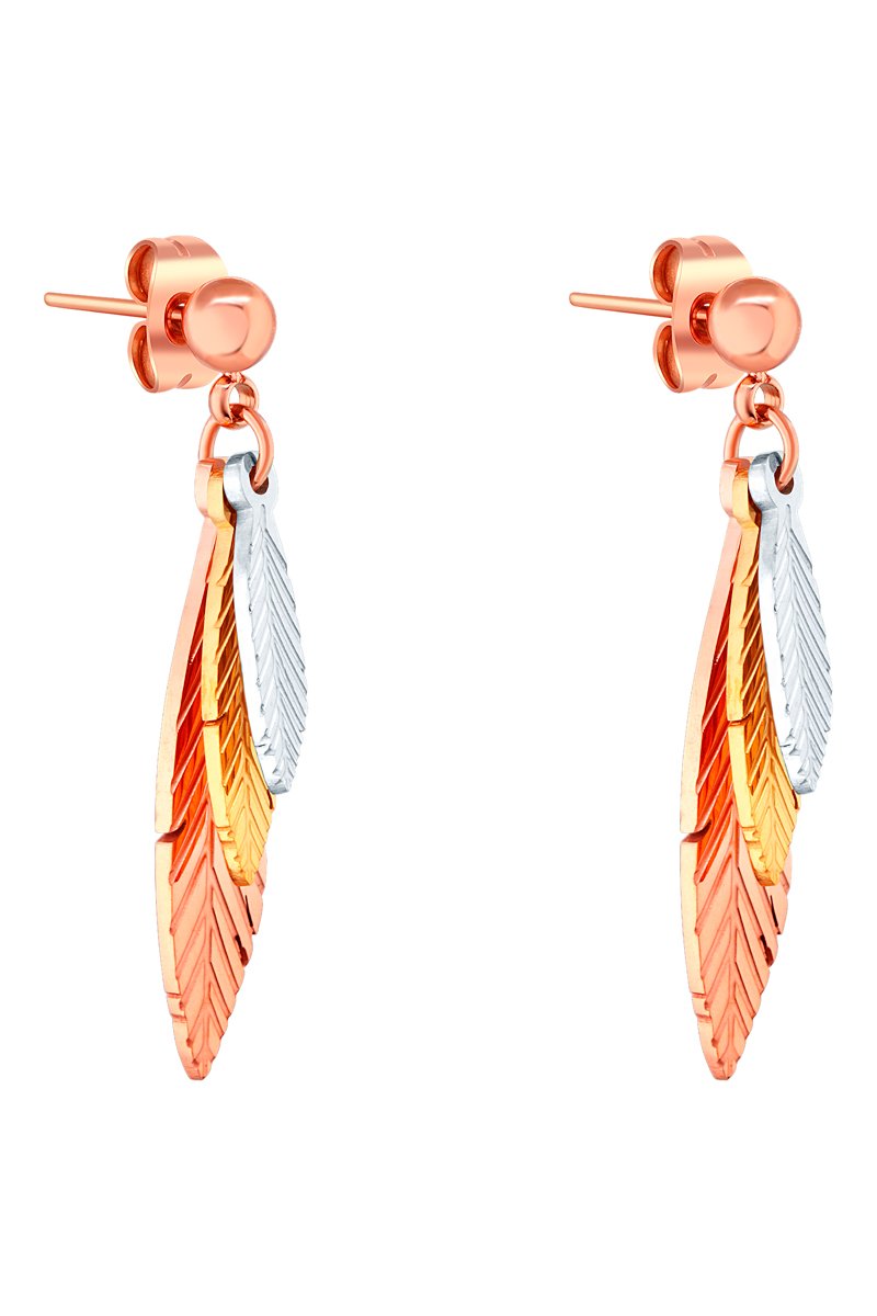 Boucles d'oreilles pendantes dorées à l'or fin jaune et rose.