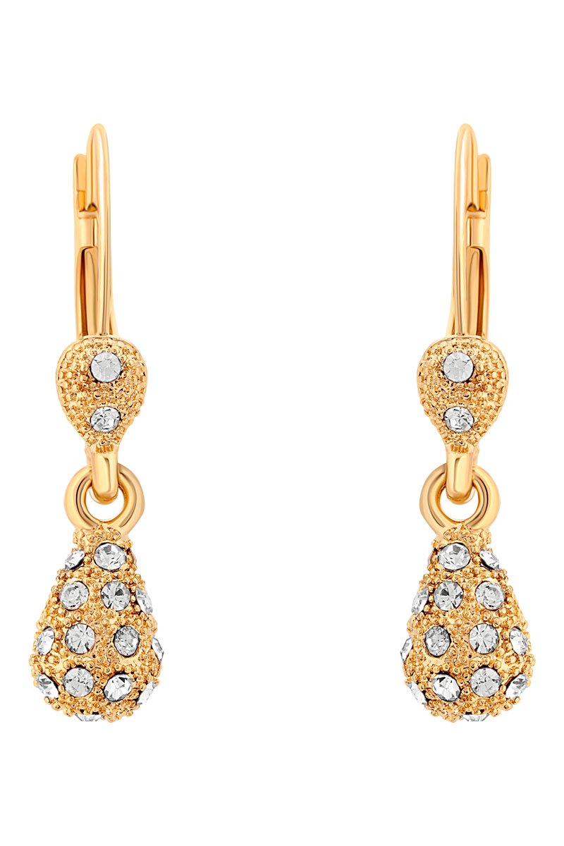Boucles d'oreilles pendantes dorées à l'or fin jaune serties de cristaux.