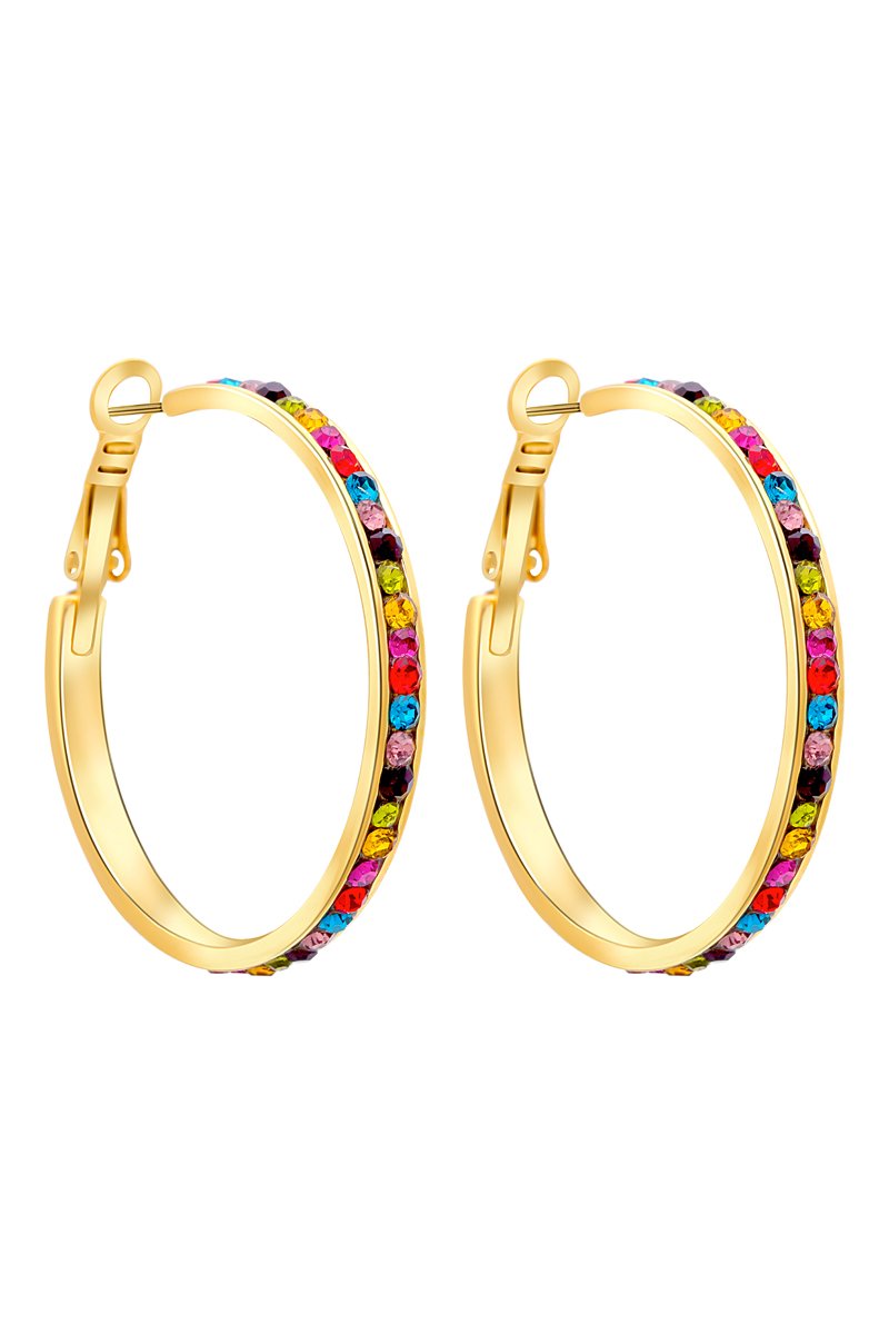 Créoles dorées à l'or fin jaune serties de cristaux.