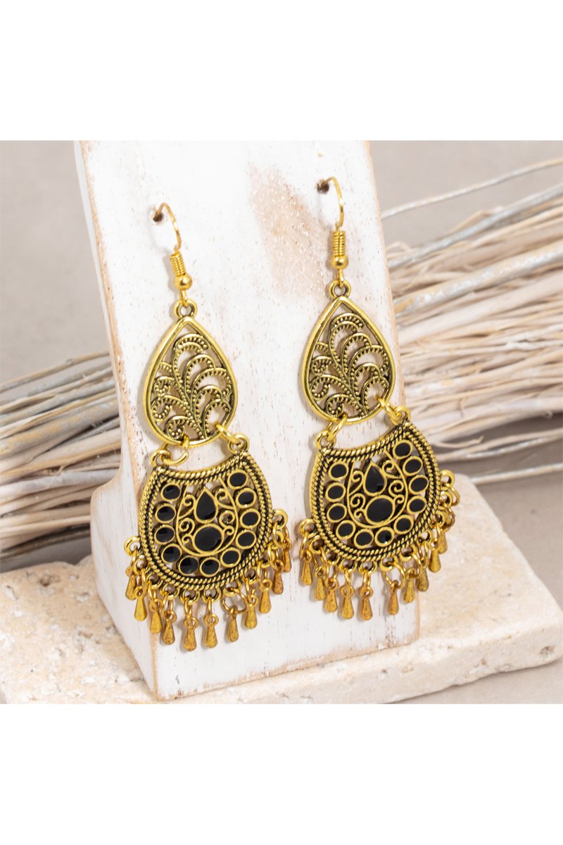Boucles d'oreilles pendantes dorées à l'or fin jaune serties d'émail.