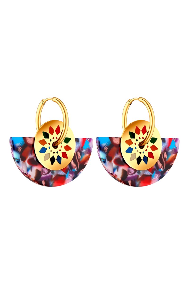 Boucles d'oreilles dorées à l'or fin jaune serties d'émail.
