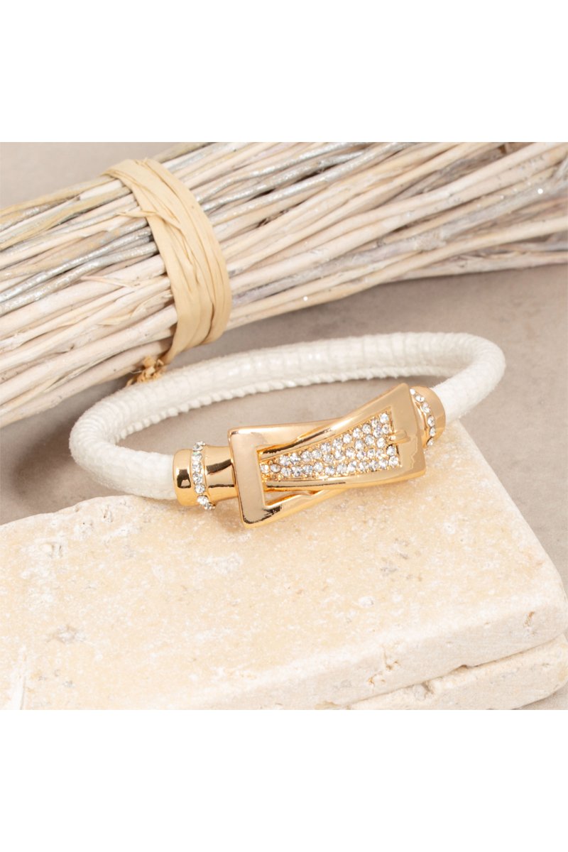 Matière : laiton doré à l'or fin jaune et simili-cuir et cristaux