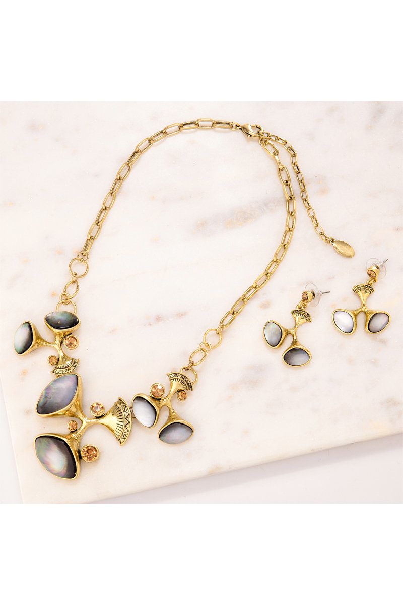 Parure dorée à l'or fin jaune - Nacre