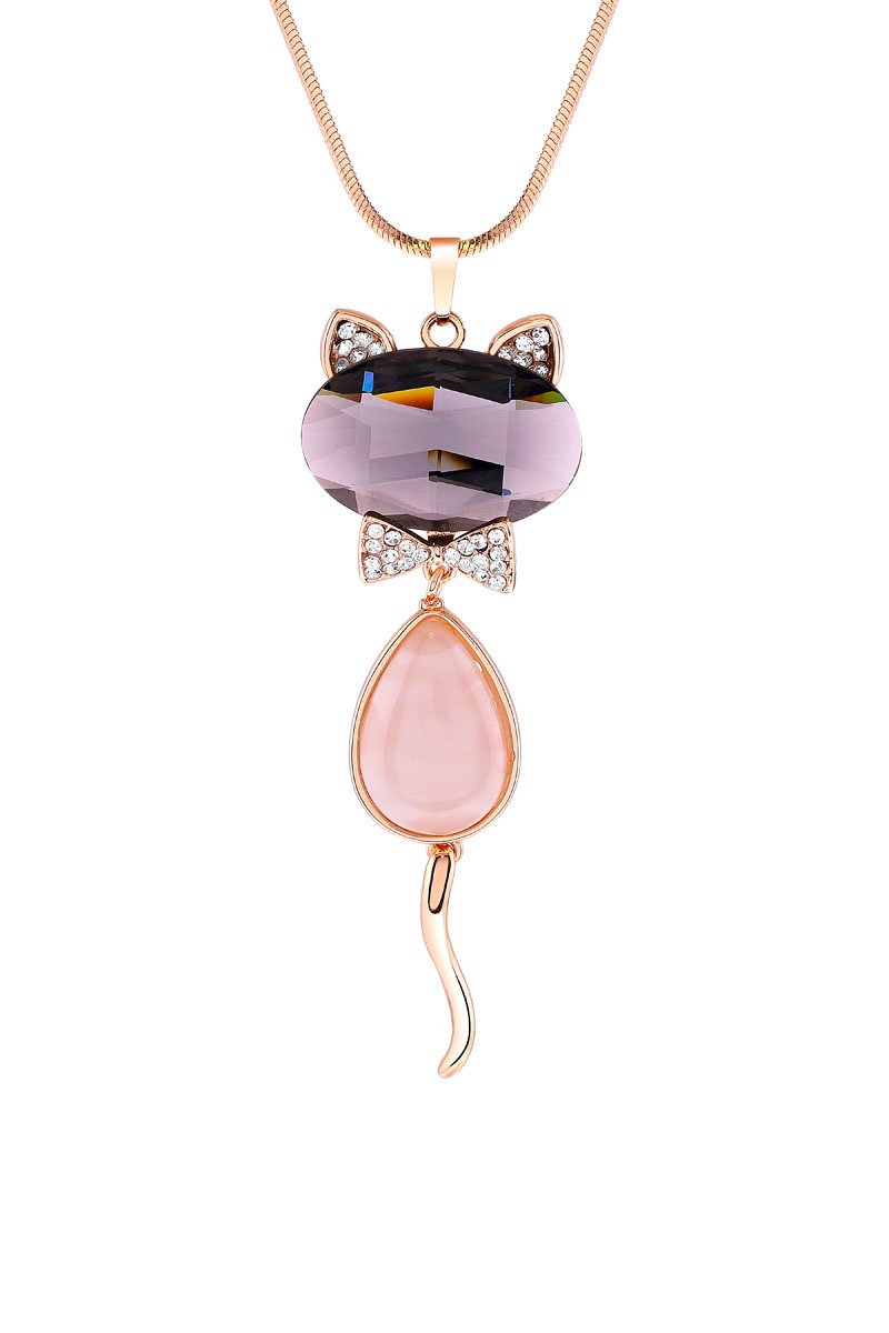 Sautoir doré à l'or fin jaune serti de cristaux.