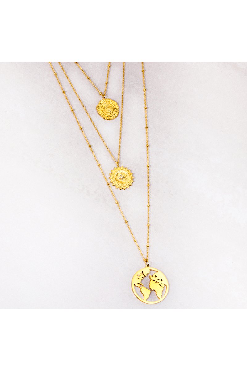 Collier multirangs doré à l'or fin jaune serti de cristaux.