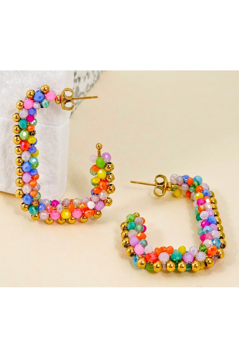 Créoles dorées à l’or fin jaune serties de cristaux.
