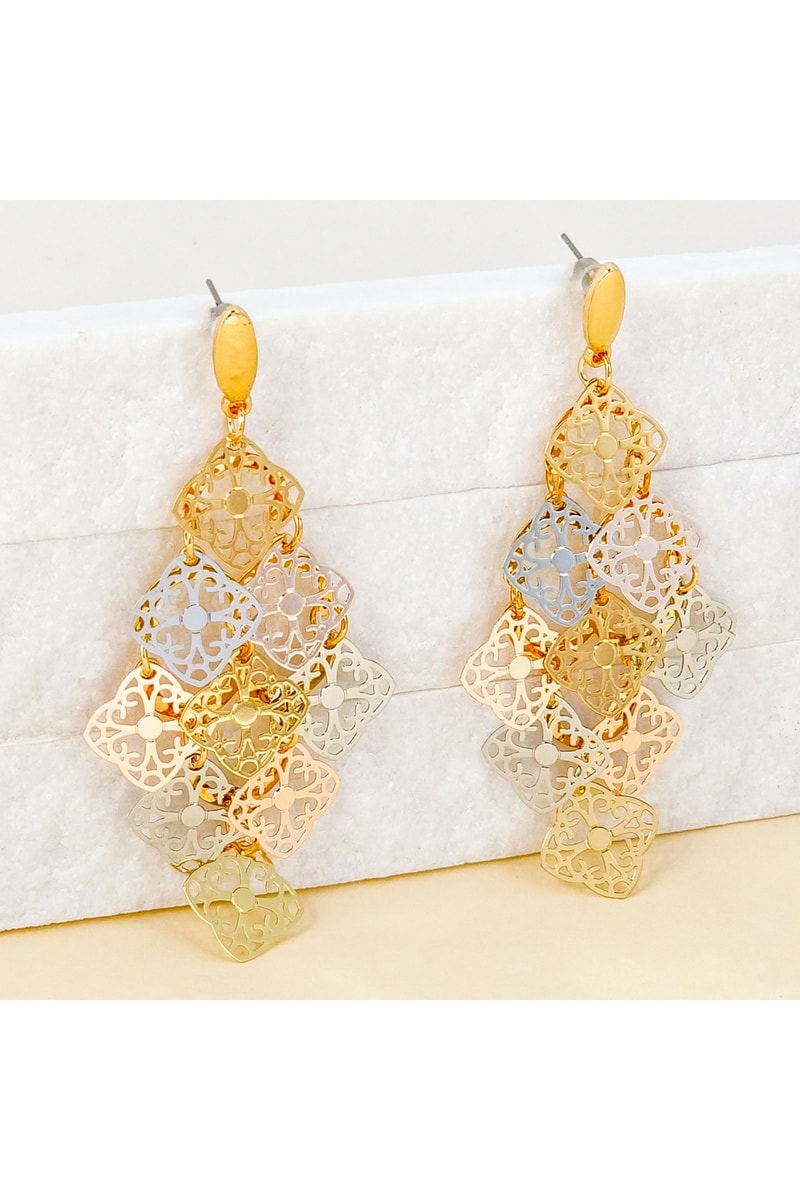 Boucles d’oreilles pendantes dorées à l’or fin jaune, dorées à l'or fin rose et dorées à l'or fin blanc.