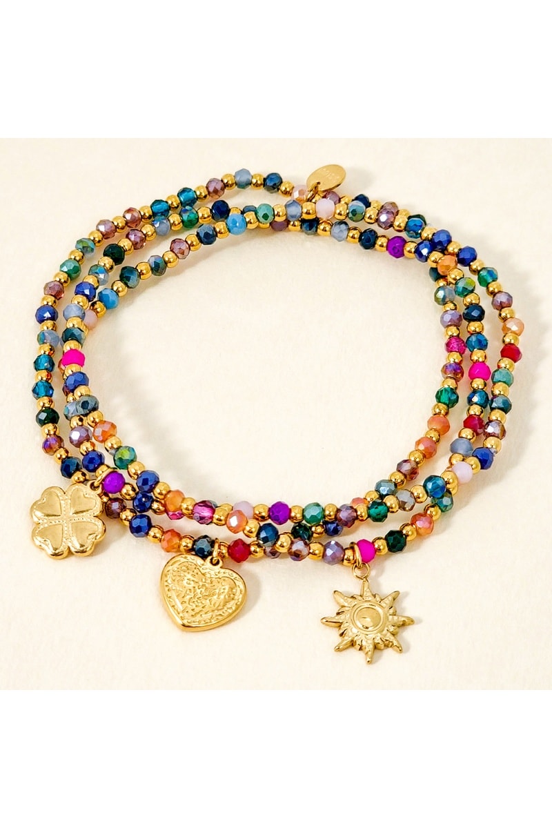 Coloris perles : violet, vert, fuchsia et turquoise