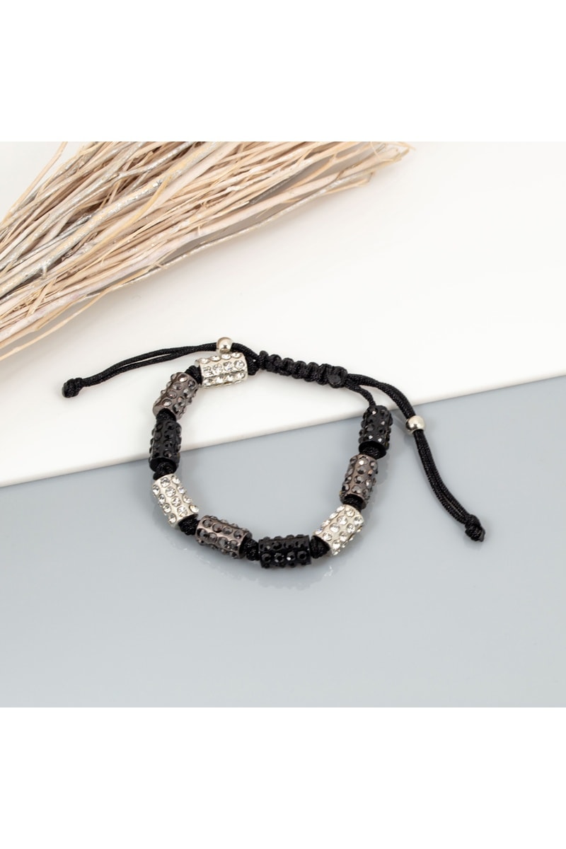 Bracelet serti de cristaux, de perles d’imitation et de céramique.