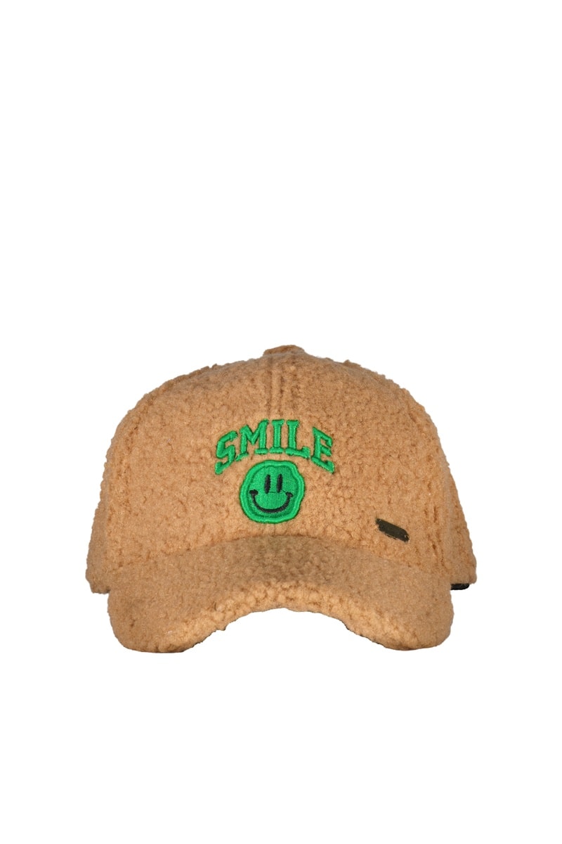 Lettrage, motif smiley, empiècement en métal et logo devant.