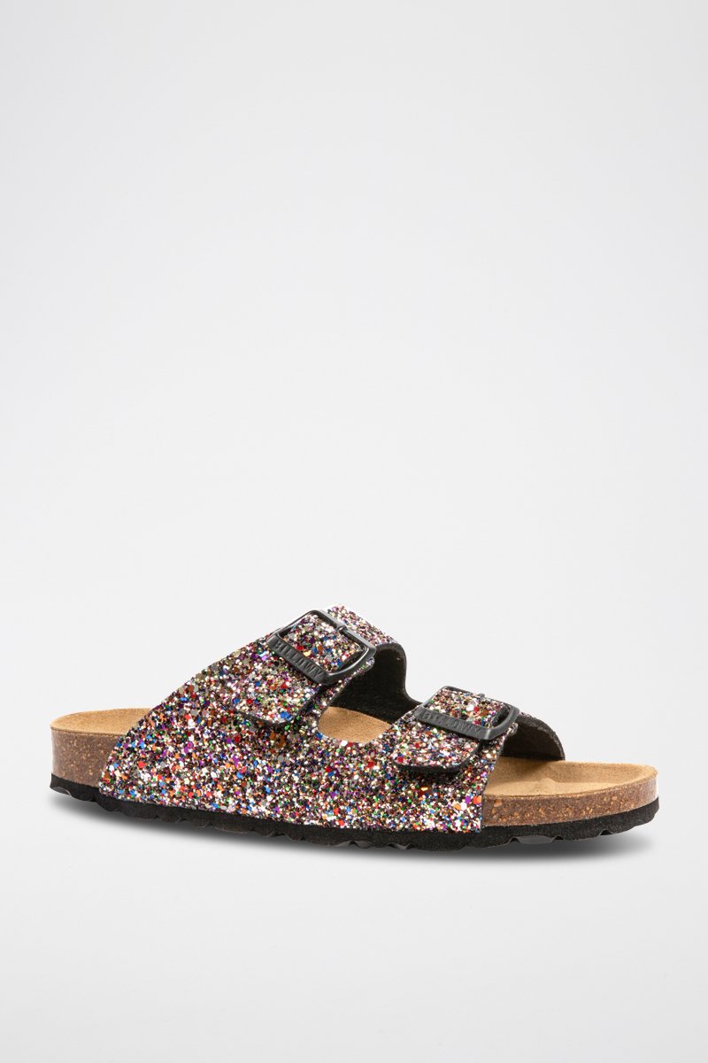 Mules pailletées.