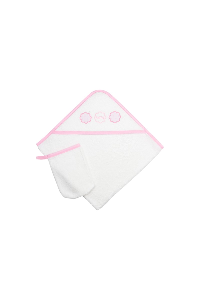 Sortie de bain et gant de toilette Très Chic - 75 x 75 cm - Blanc et rose