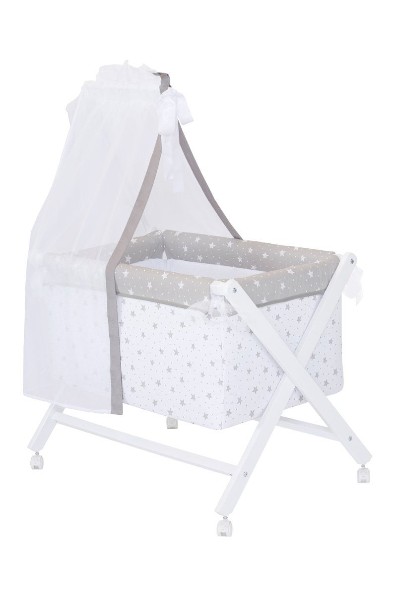 Mini berceau en bois et parure Stars and Dots - Jusqu'à 10 mois - 5 pièces - Blanc
