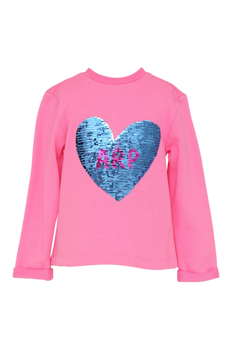 Motif cœur et logo à sequins devant.