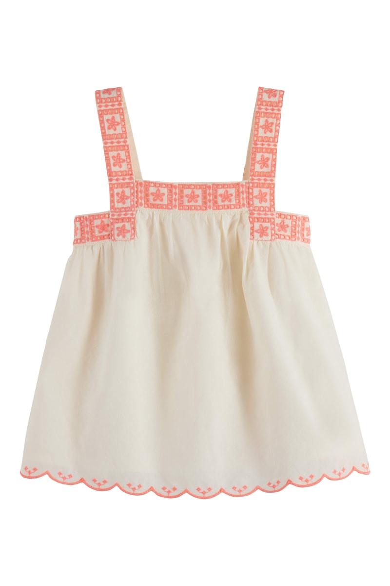 Motifs fantaisie brodés sur les bretelles, devant, au dos et à la base.