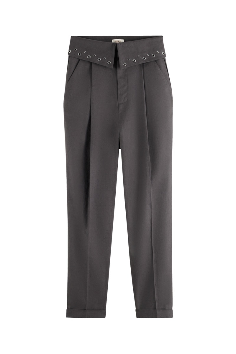 Taille haute avec revers et œillets métalliques.