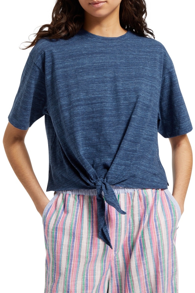 T-shirt noué - Bleu marine chiné