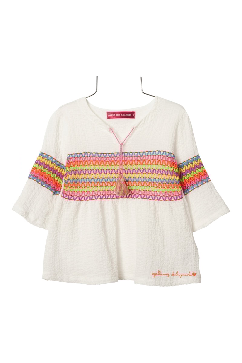 Agatha Ruiz de la Prada développe une collection de vêtements tout en couleur et fantaisie où les cœurs, les rayures et les pois s'entremêlent pour refléter sa personnalité. Cette créatrice espagnole propose des produits confortables, fonctionnels et pleins de bonne humeur pour les petites filles.