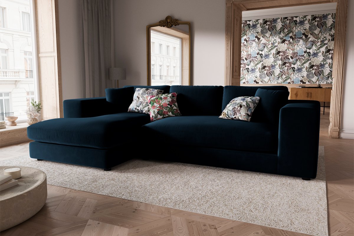 Canapé d'angle gauche Tendance - Bleu foncé - 5 places - Toucher velours
