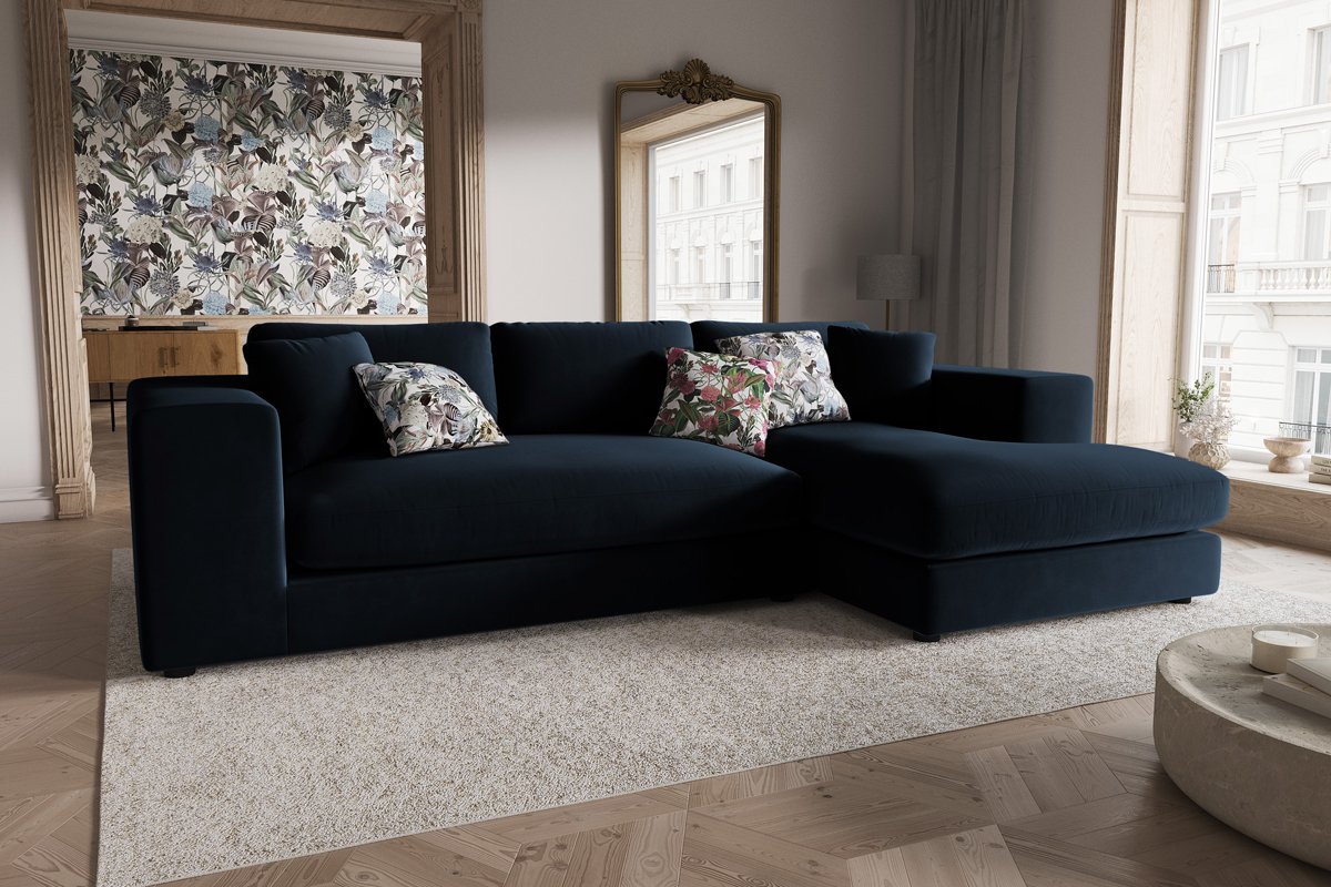 Canapé d'angle droit Tendance - Bleu foncé - 5 places - Toucher velours