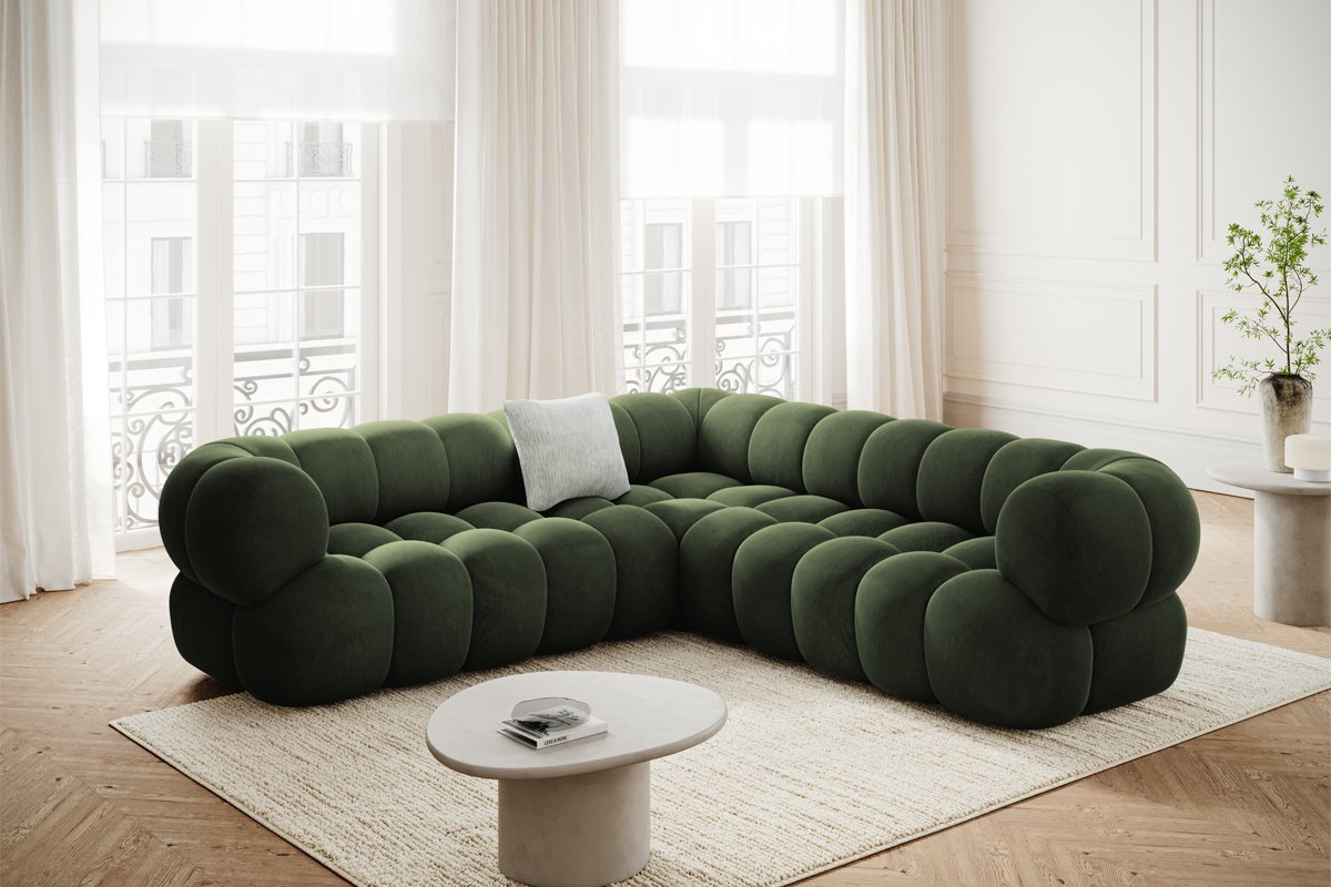 Canapé d'angle modulaire Maurice - Vert - 5 places - Toucher velours
