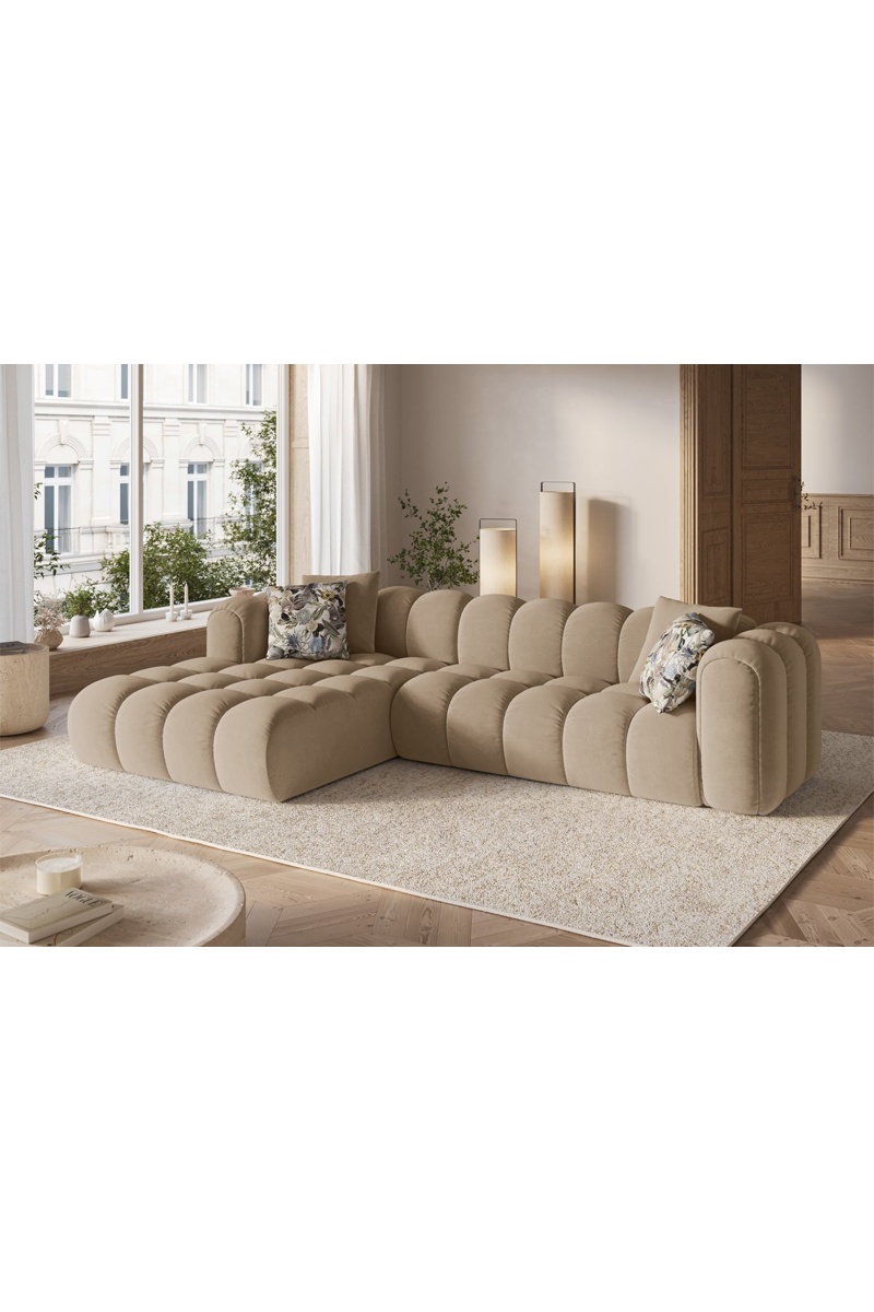 Canapé d'angle gauche modulable Elise - Beige - 4 places - En tissu velours