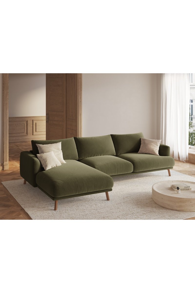 Canapé d’angle gauche Margot - Vert olive - 4 places - En tissu velours