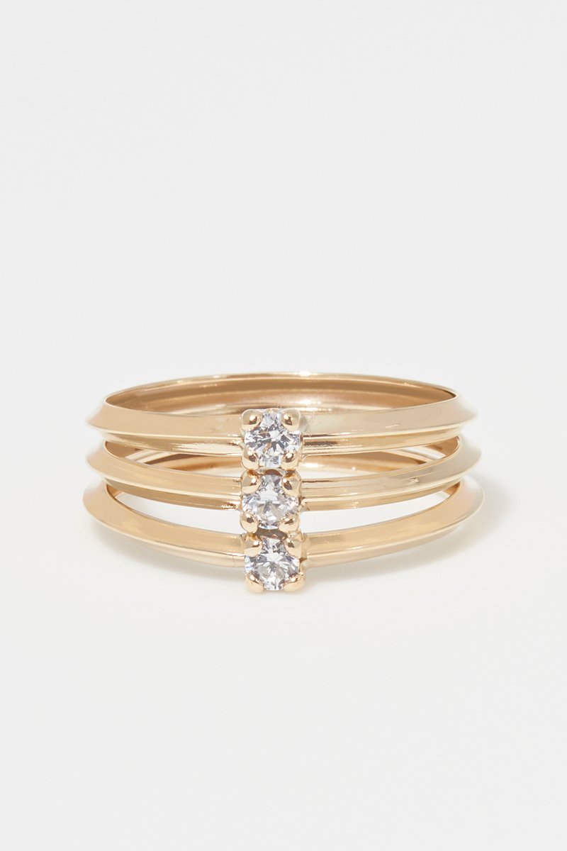 Bague en or jaune sertie de zirconiums.