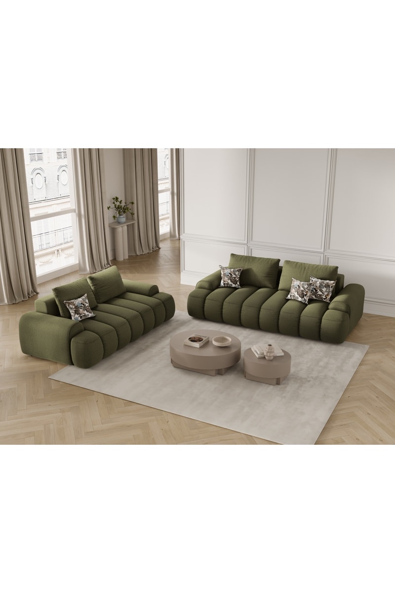 Canapé Simona - Vert olive - 3 places - En tissu structuré