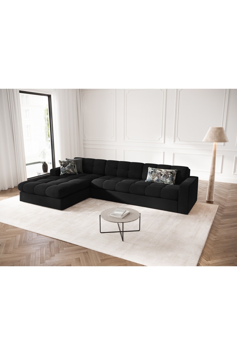 Canapé d'angle gauche Yohan - Noir - 4 places - En tissu velours