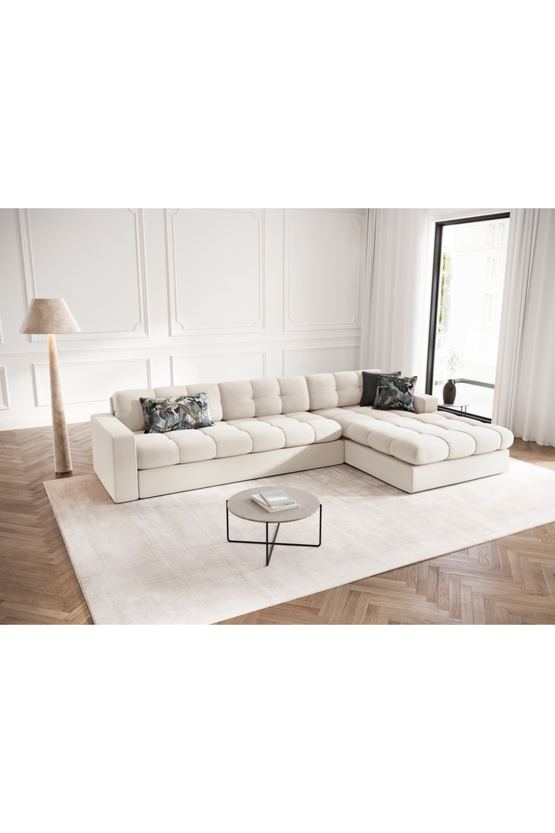 Canapé d'angle droit Yohan - Beige - 4 places - En tissu structuré