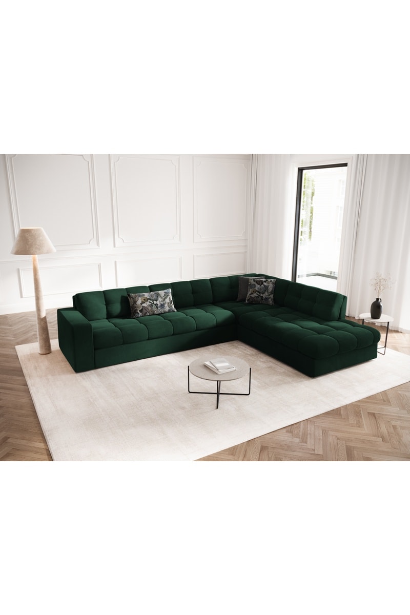 Canapé d'angle droit Yohan - Vert foncé - 5 places - En tissu velours