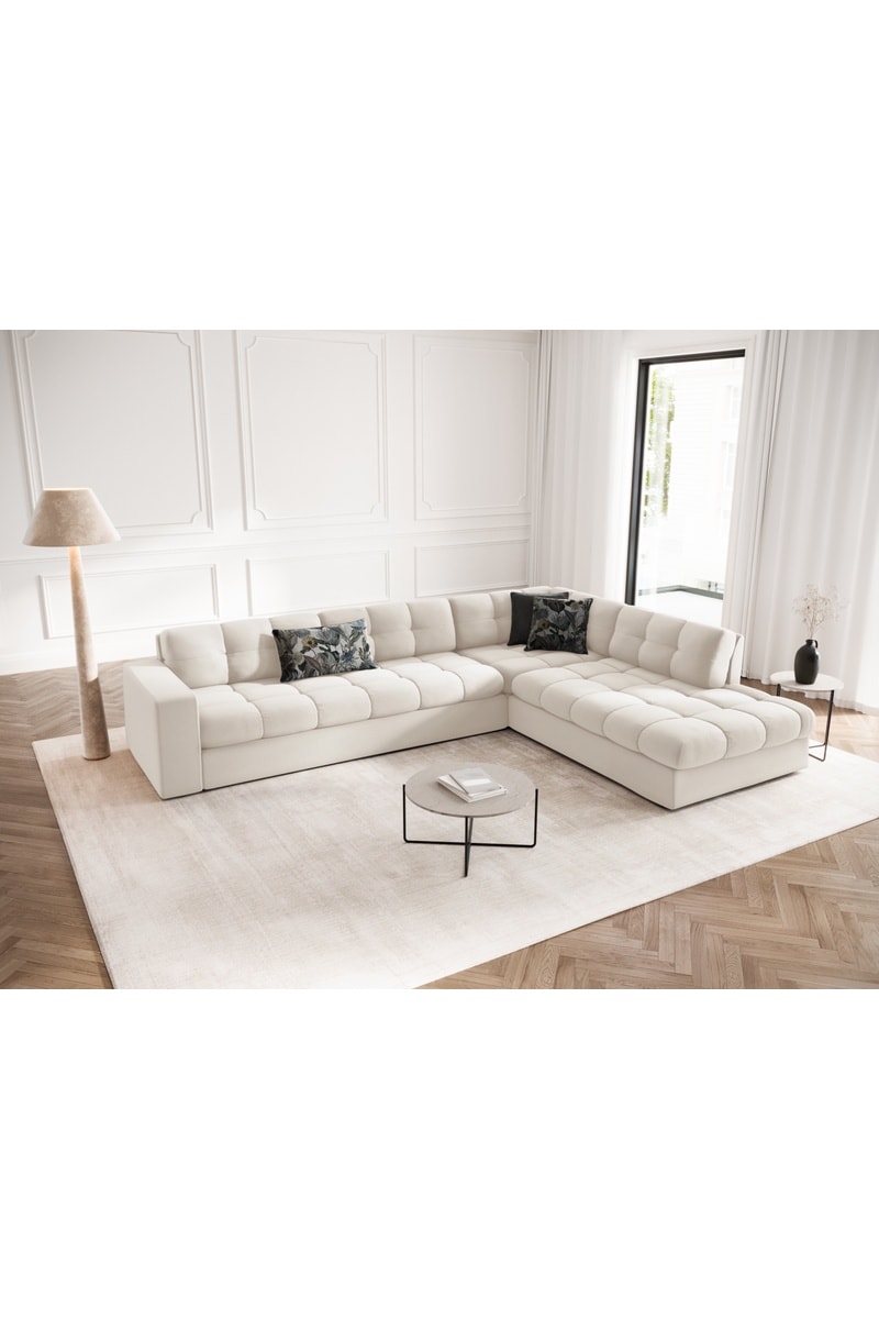 Canapé d'angle droit Yohan - Beige - 5 places - En tissu structuré