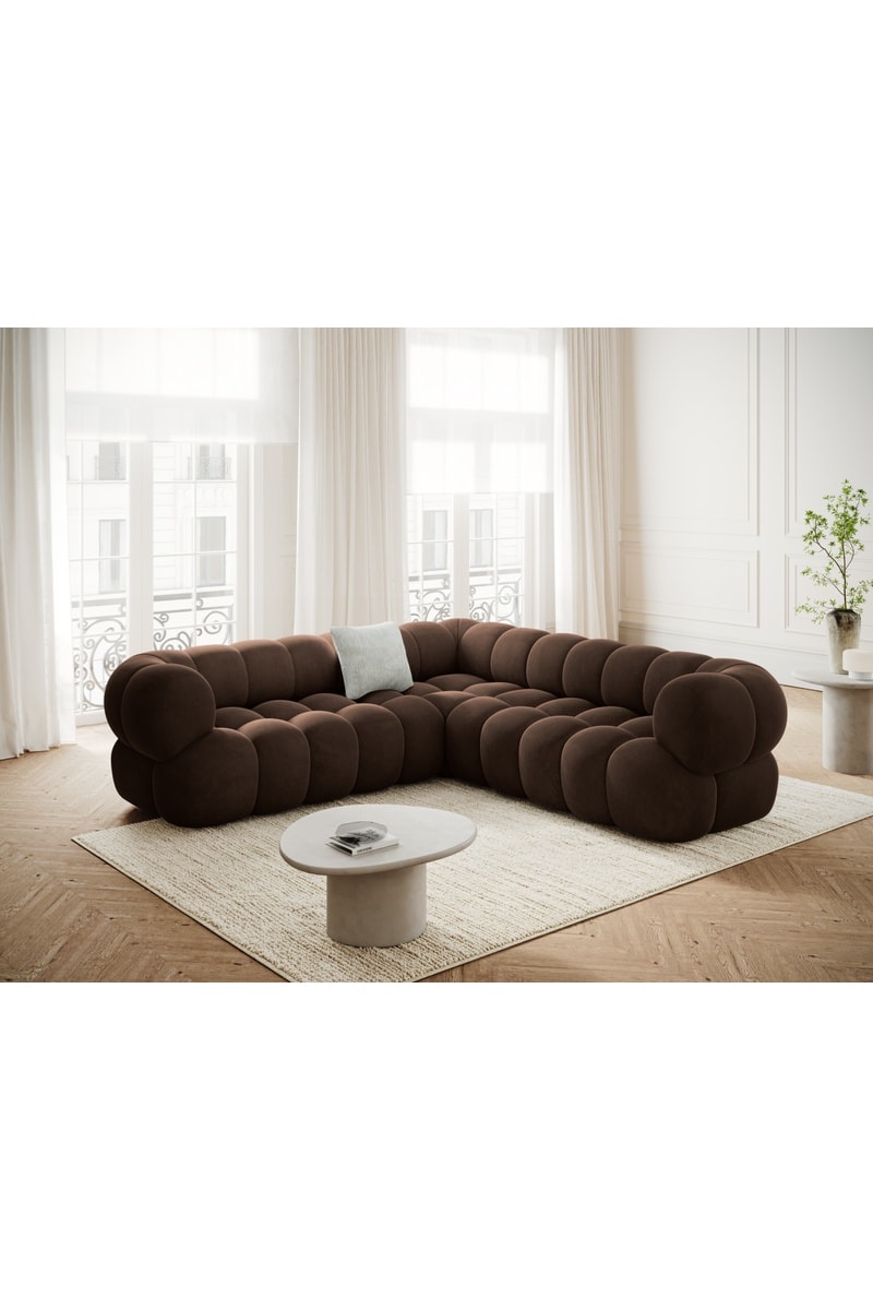 Canapé d'angle gauche Maurice - Marron - 5 places - En tissu velours