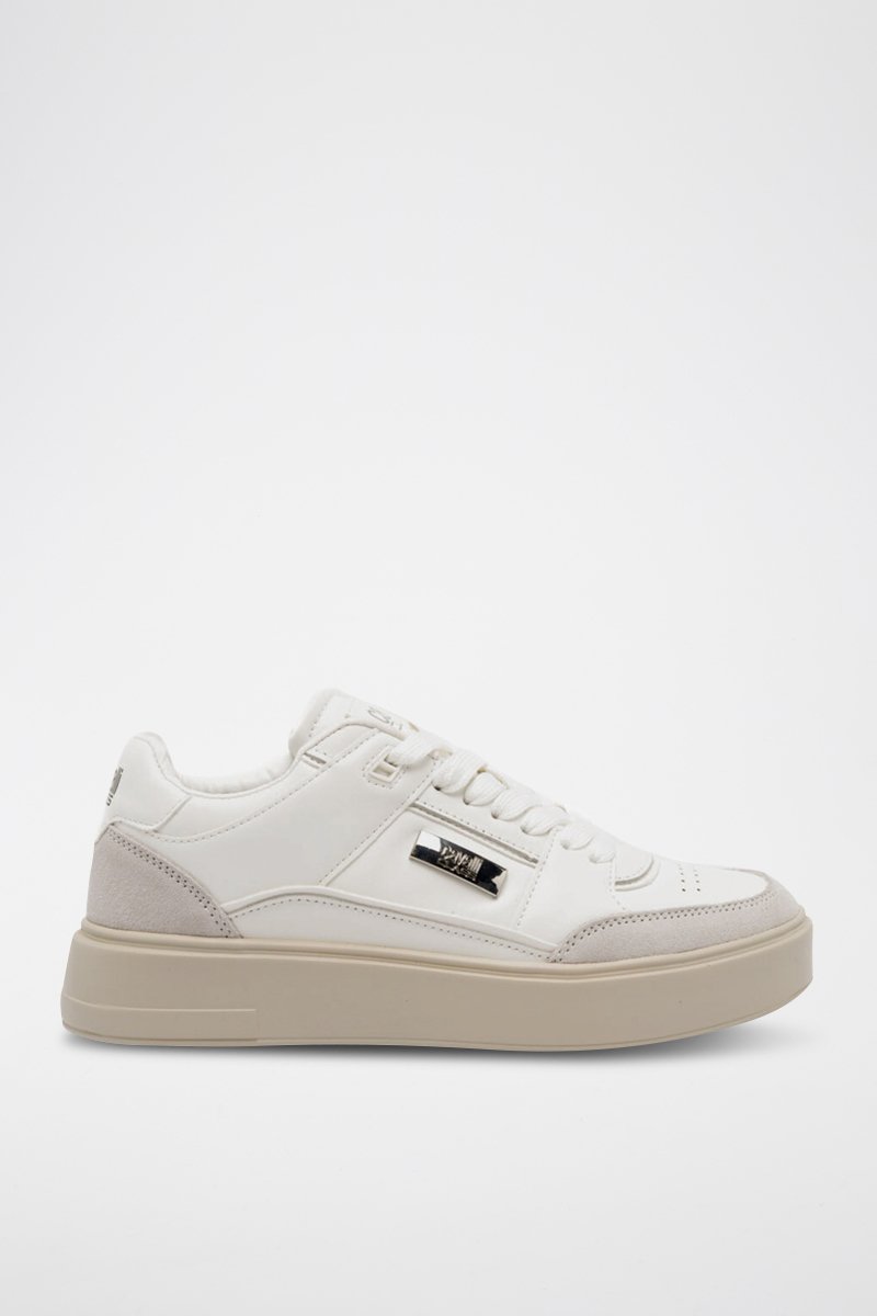 Baskets plateformes en cuir - Blanc et taupe