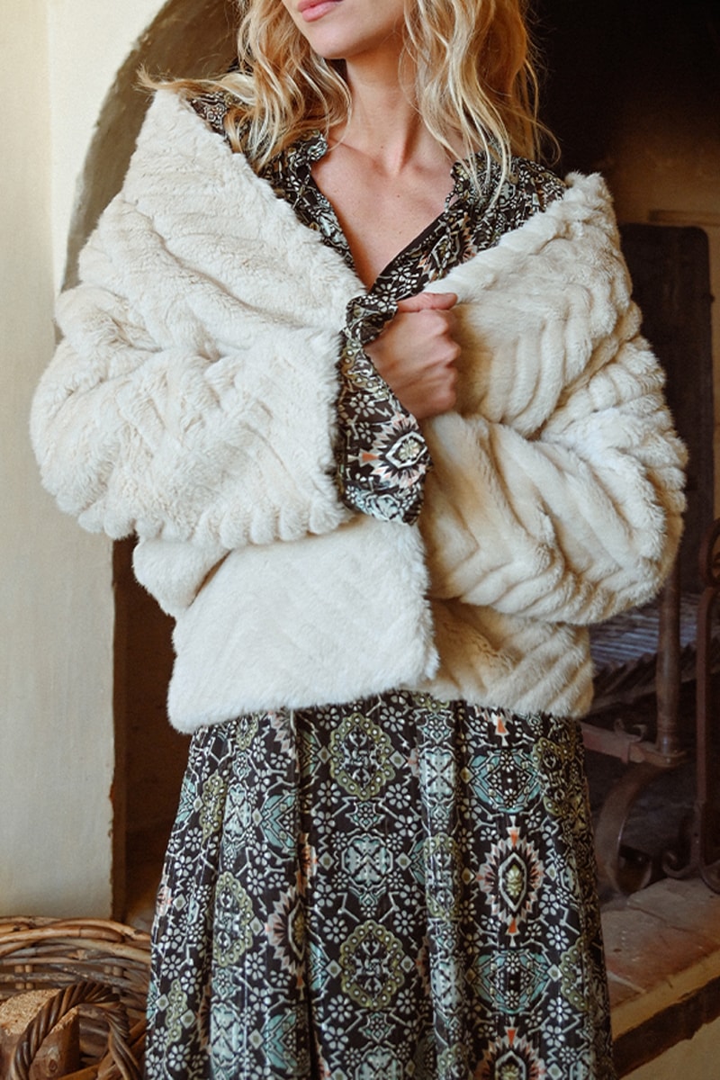 Manteau en fourrure synthétique à manches longues.