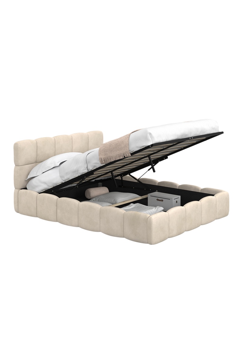 Lit coffre Bubble en velours beige avec sommier et tête de lit 140x190cm