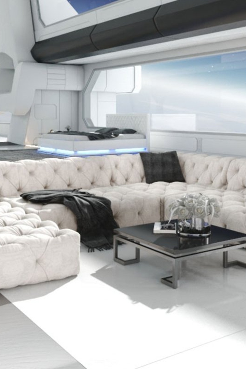 Canapé d'angle droit panoramique.