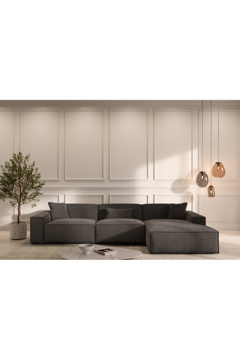 Canapé d’angle droit Lionel - Anthracite - 5 places - En tissu structurel