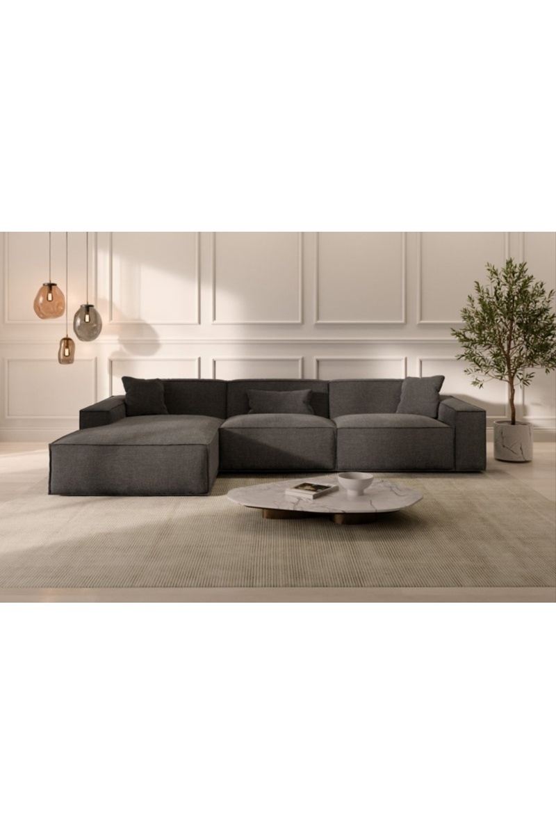 Canapé d’angle gauche Lionel - Anthracite - 5 places - En tissu structurel