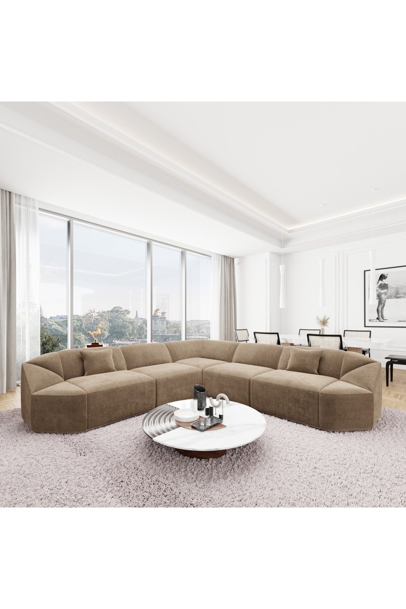 Canapé d'angle panoramique Laguna - Marron - 6 places - En tissu velours